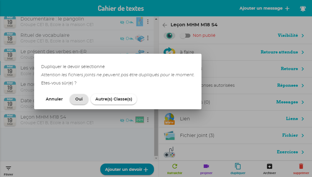Dupliquer vers une autre classe (1)