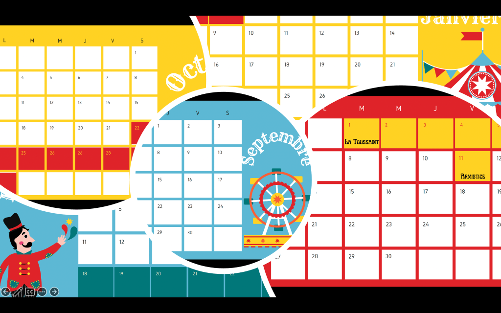 J’aimerai utiliser ce calendrier (version cirque) cette année mais il faudrait forcément que je le modifie. Existe-t-il une version que l’on peut modifier ? Je suis allée sur Canva mais je n’arrive pas à voir comment tu as fait.